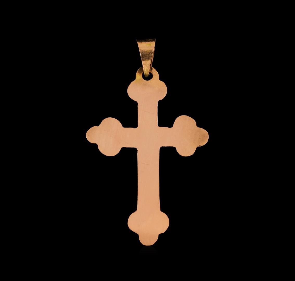 One cross pendant featuring: 14KT rose gold weighing 0.90 grams.