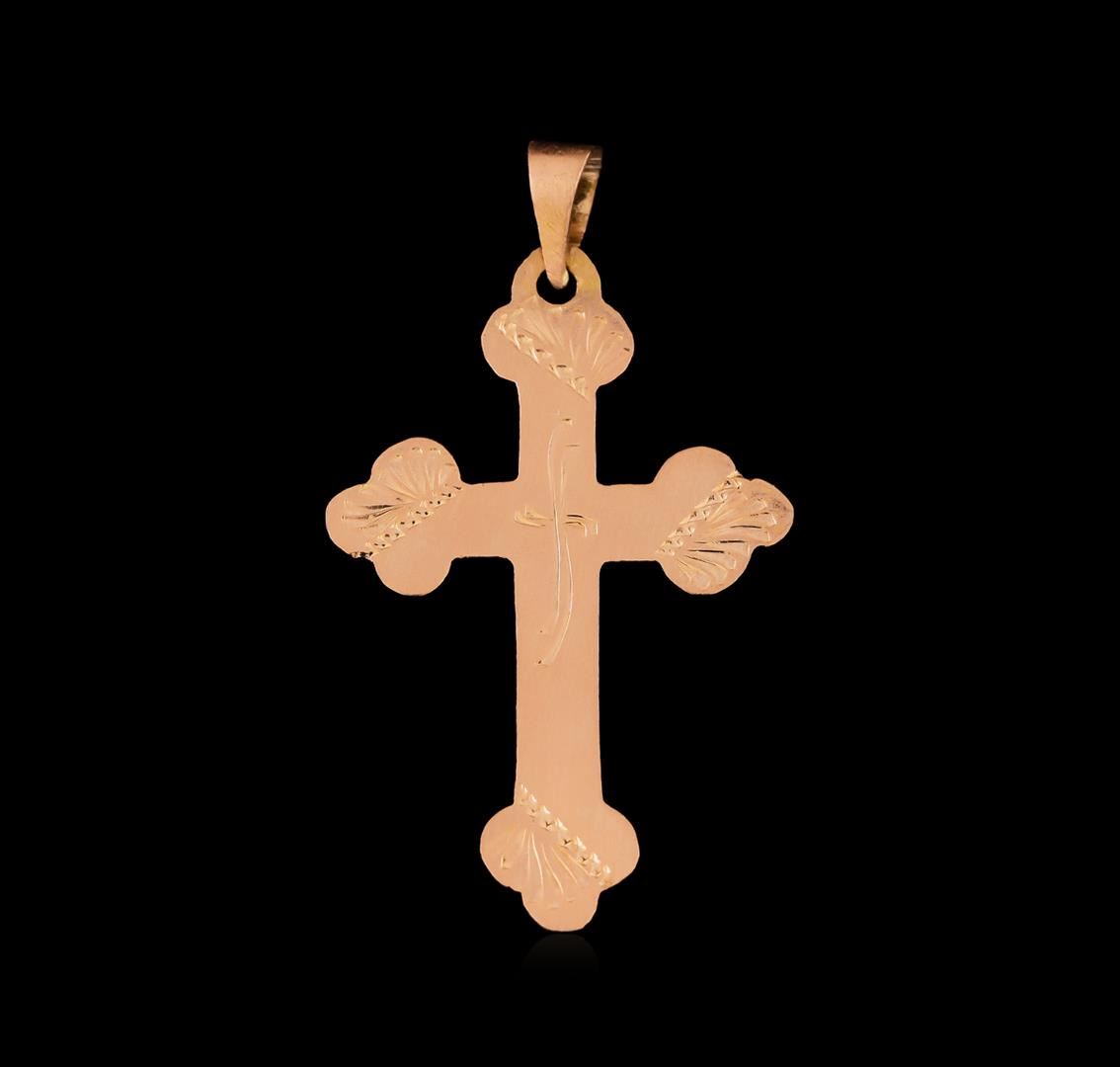 One cross pendant featuring: 14KT rose gold weighing 0.90 grams.
