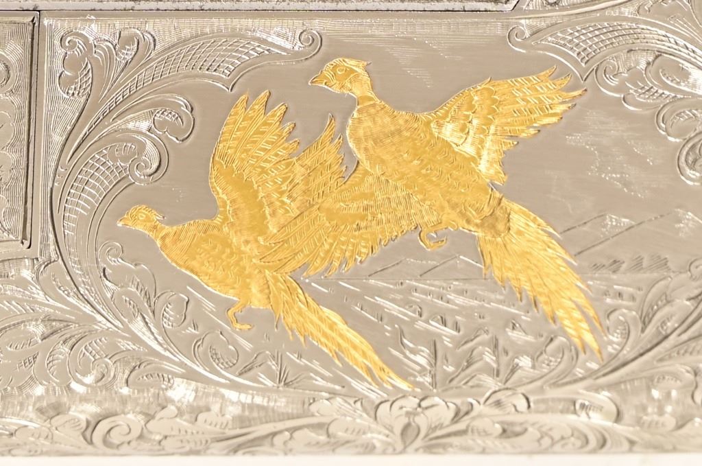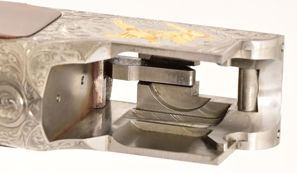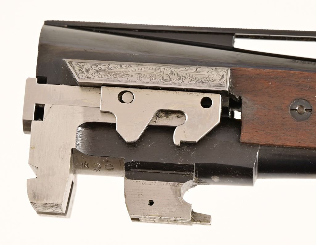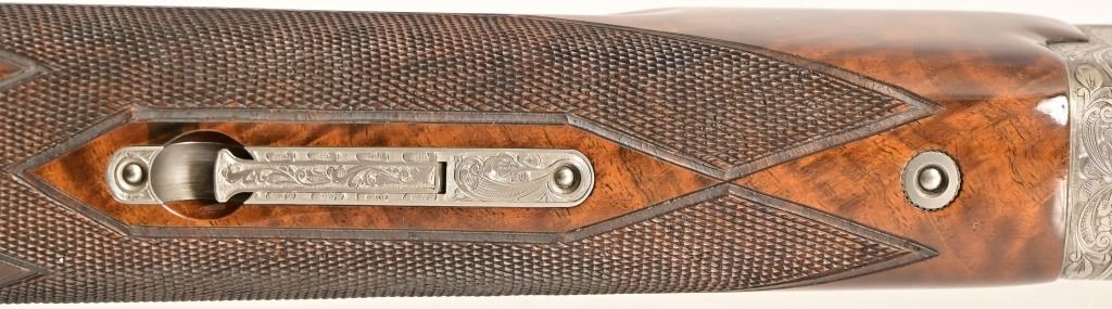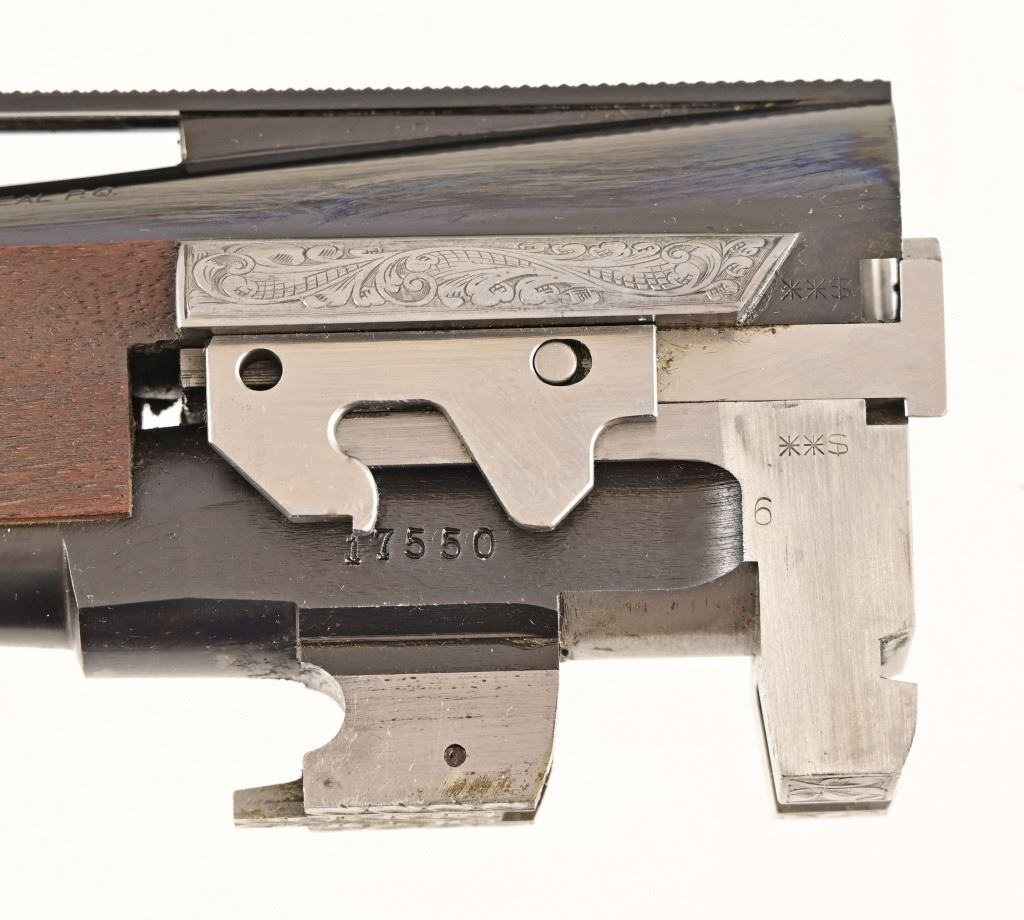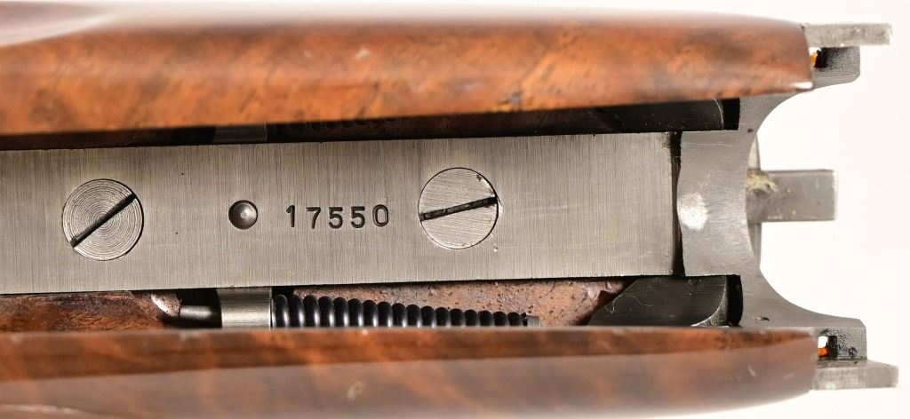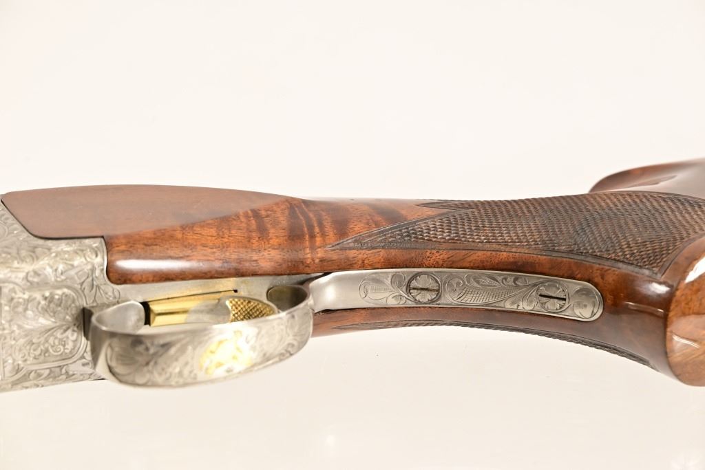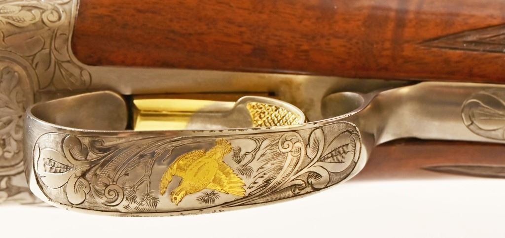 S/N 17550NM6A3. Engraved receiver with gold pheasant scene. Deluxe checkered stock. Four 28-inch barrel sets ranging from .410-12 Gauge. Modern