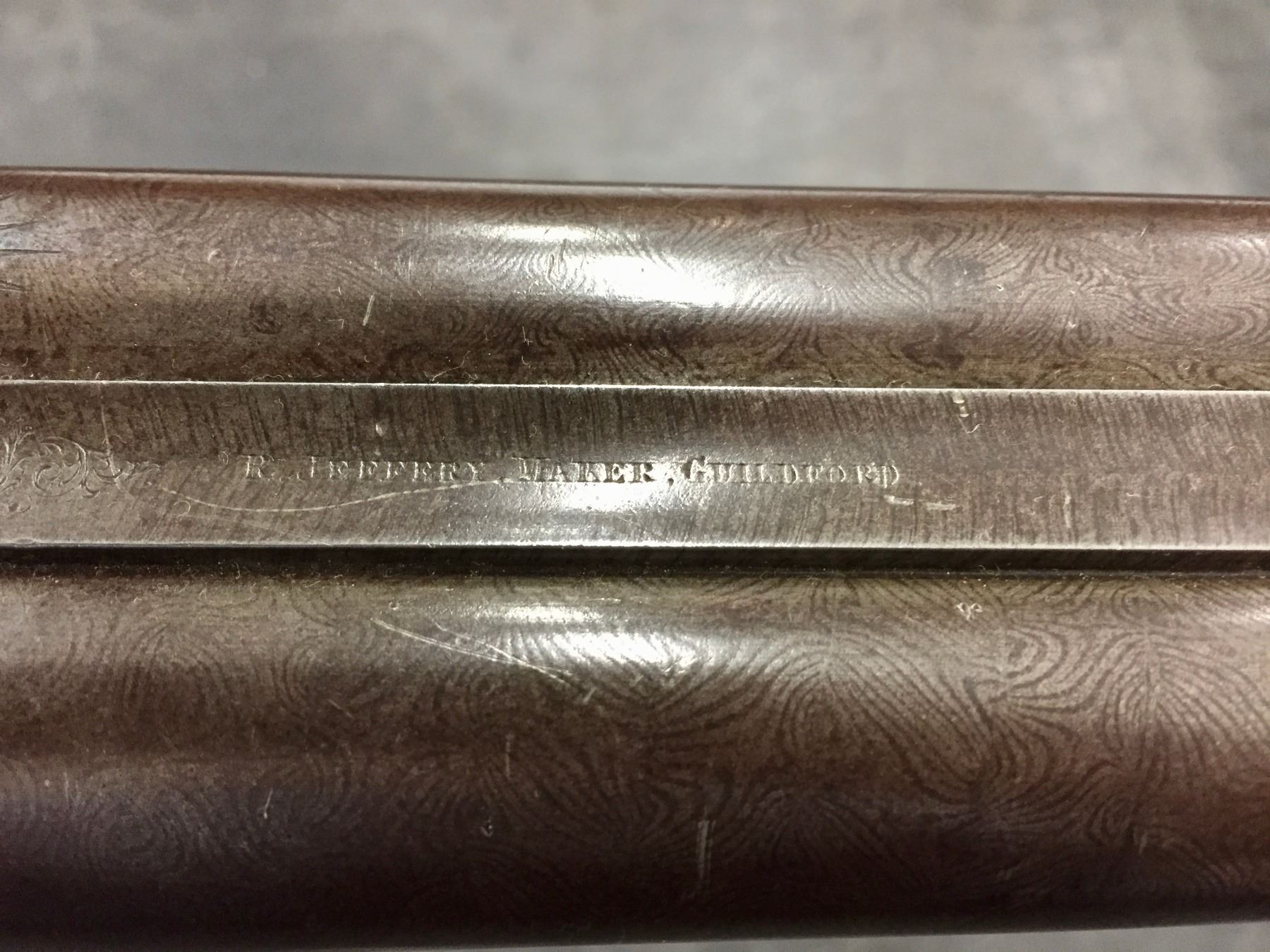 Description: Presented for sale in this lot is an English Double Barrel, nicely engraved shotgun, marked by Richard Jeffery. This is a 12 gauge cartridge fire with an under leader breech release. Maker: Richard Jeffery. Approx. Age: Vintage. Size: Barrel measures 30â€. Condition: Good for its age, normal wear expected. Please look closely at the pictures - they are an important part of our description. Shipping: There will be a $15 handling / packaging fee for shipping this lot. The actual cost of postage will be added on top of that. *****This firearm requires an FFL Transfer*****
