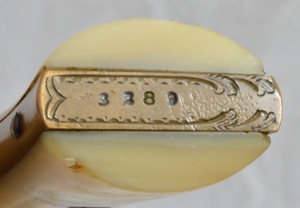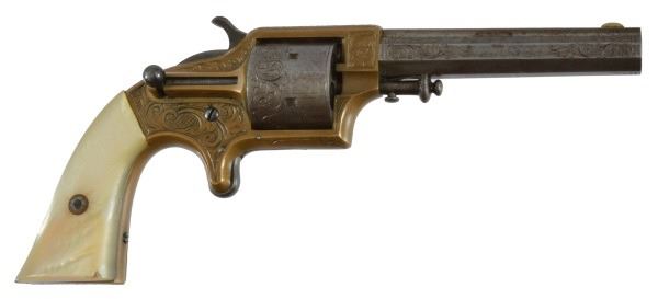 Serial no. 3289 .30 rimfire. factory or New York engraved in good working condition. cracked & small chipped edge of mother of pearl grips.