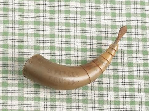 Engraved Eire, PA powder horn, dated 1861, Measures 6.5 inches length. MWF2332