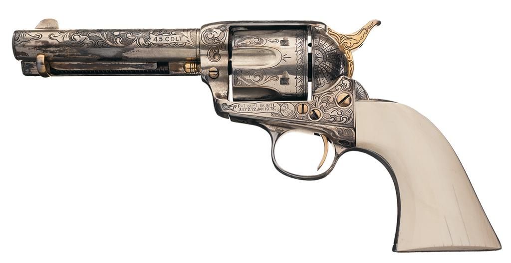 Engraved First Generation Gold and Silver Plated Colt Single Action Army Revolver with Ivory Grip and Factory Letter