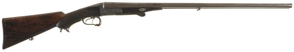 Relief floral vine and game animal engraving. 2 1/2" chambers, choked full/full, extractor and 14" LOP.