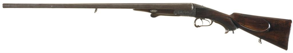 Engraved Gold Inlaid Bader Marked German Double Barrel Hammerless Shotgun