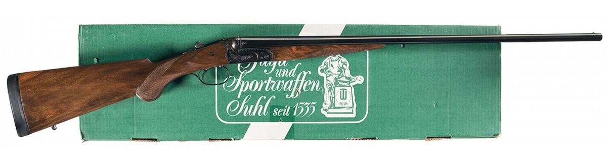Engraved Merkel Model 41 Side by Side 28 Gauge Scalloped Box Lock Shotgun with Box