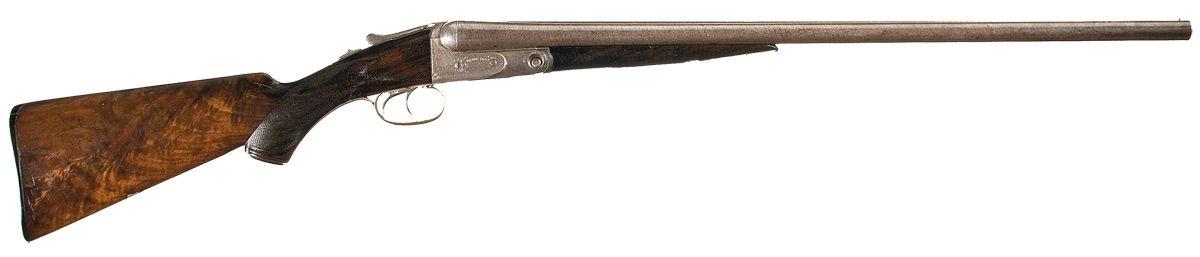 Factory scroll game scene engraving on receiver and floor plate with standard features. 2 1/2" chambers, improved cylinder/cylinder chokes with length of pull 14 1/8". This gun has been modified compared to its factory letter stating original features of this gun.