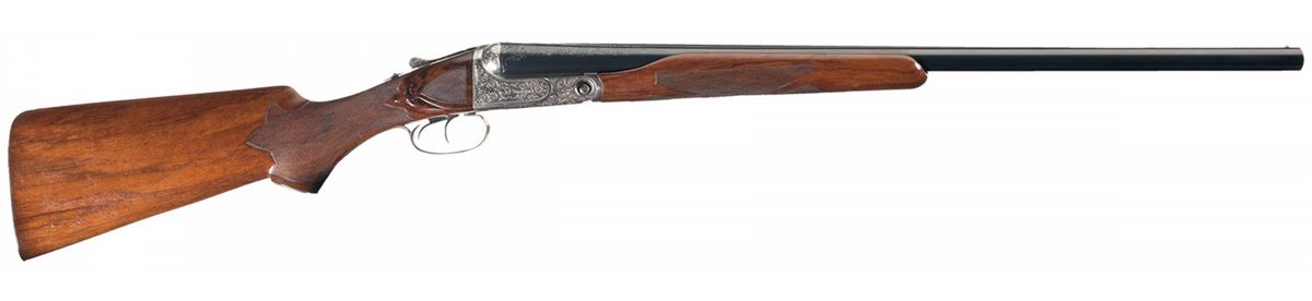 Condition: Refinished, the barrels retain 99% blue finish. The buttplate and trigger guard have a smooth brownish gray patina. The action has been polished and remains bright. The replacement wood is excellent with some scattered minor dings and dents with crisp checkering. The engraving and markings are clear. Mechanically excellent. The case is very good.