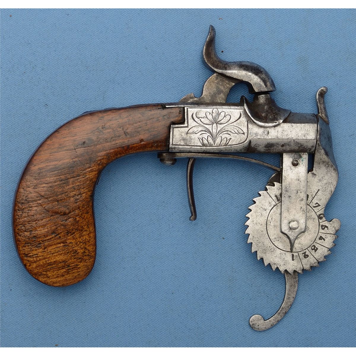 There are no maker markings. The rotating indicator disk is graduated from 1 to 10. CONDITION: Good and mechanically excellent.
