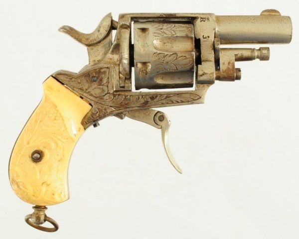 1 3/4" barrel, proof marks all over gun. 40" belt.