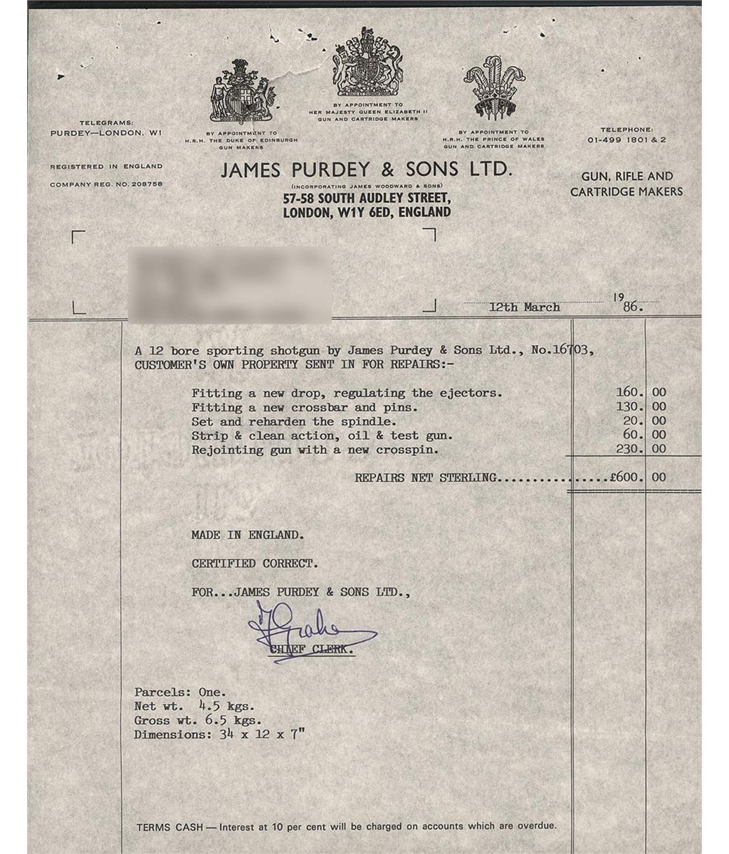 Manufacture: Purdey J & Sons Ltd