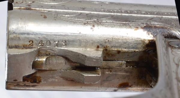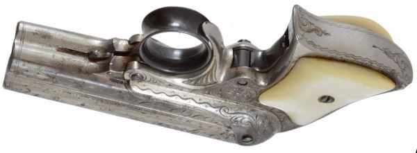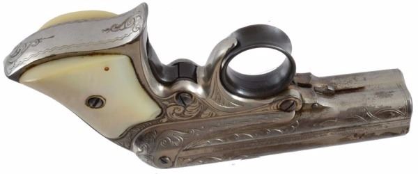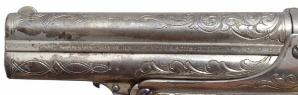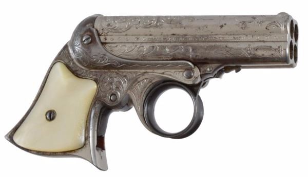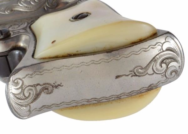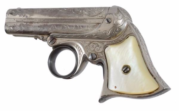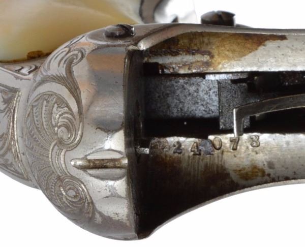 Serial no. 24078 .32 caliber factory or New York presentation engraved retaining 70%-80% of original silver finish. inscribed "R.W. Payne Springfield Ill." in good working condition with mother of pearl grips.