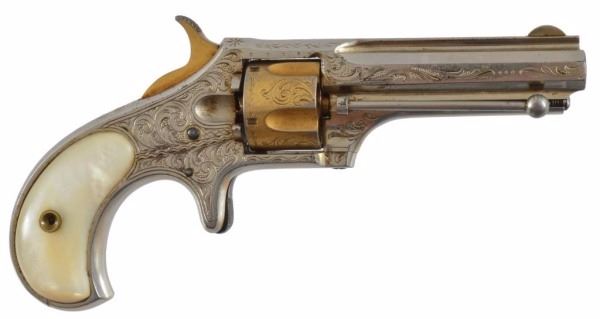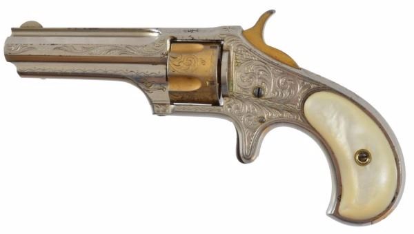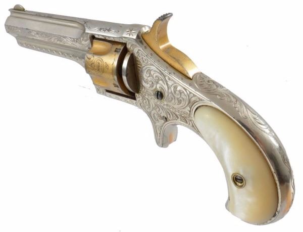 Serial no. 1885 .30 rimfire factory or New York engraved in very good 95%+ condition with mother of pearl grips