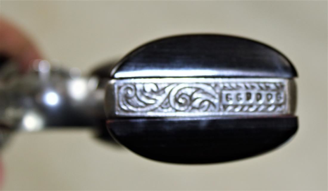 M&P model .38 caliber, with aftermarket engraving, with polished finish and custom grips.