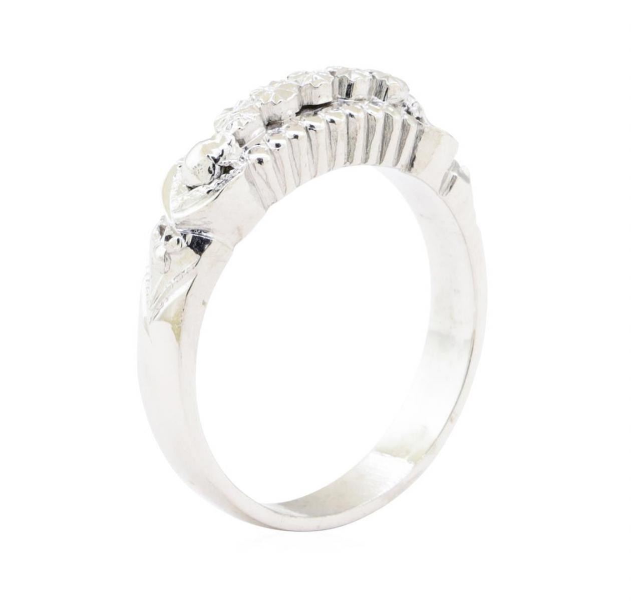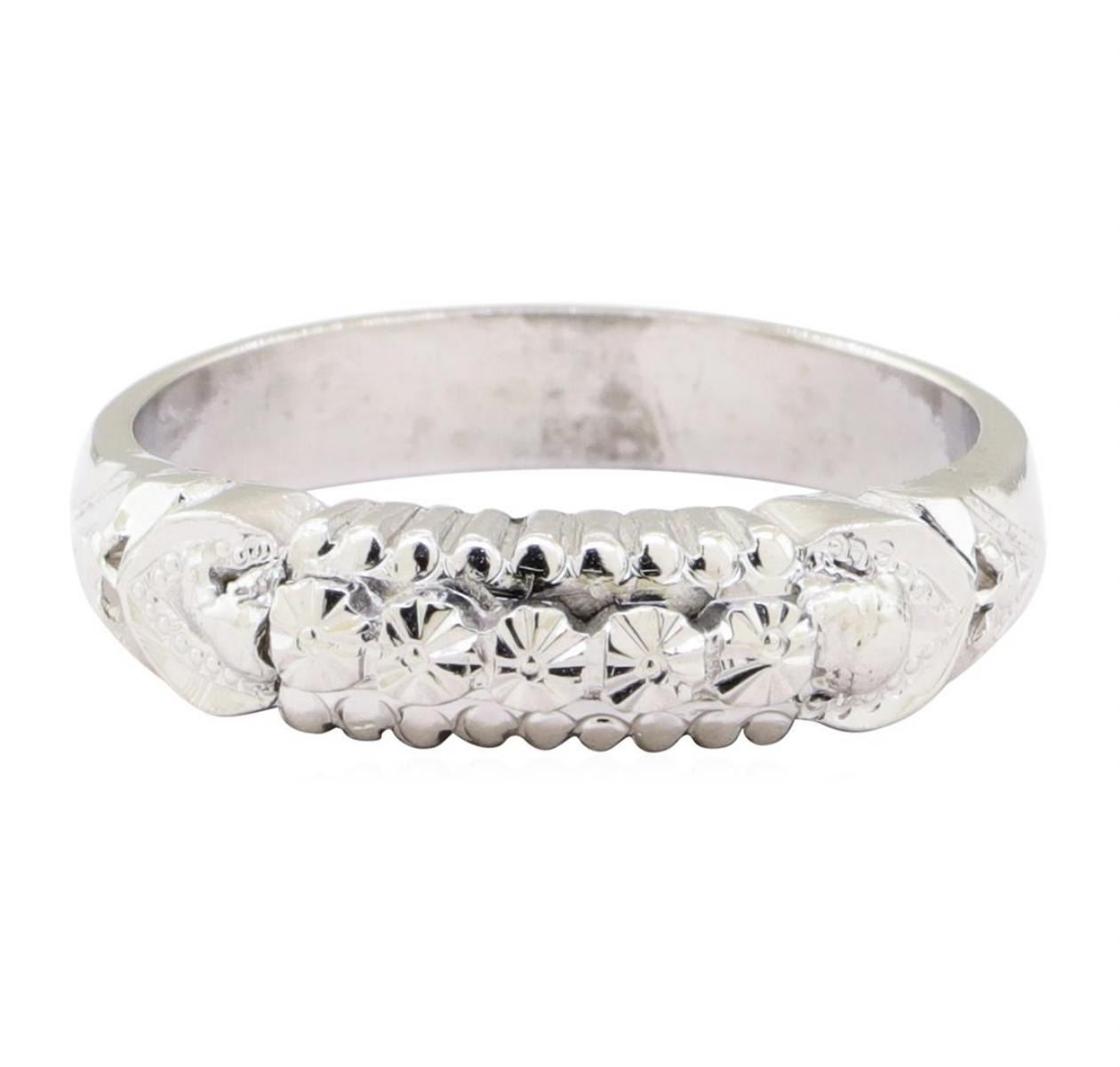 One ring with a straight line motif featuring: platinum weighing 9.0 grams.