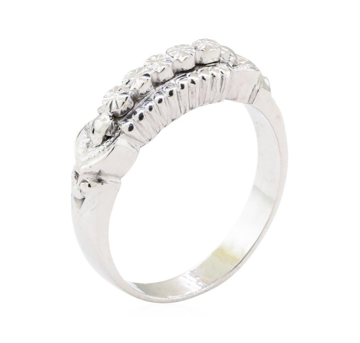 One ring with a straight line motif featuring: platinum weighing 8.9 grams.