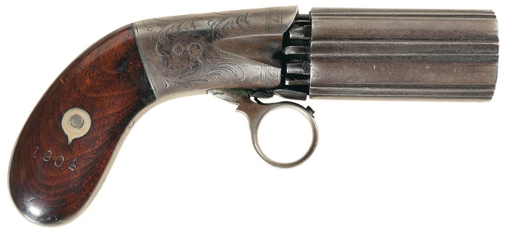 Engraved Unmarked Underhammer Ring Trigger Double Action Pepperbox