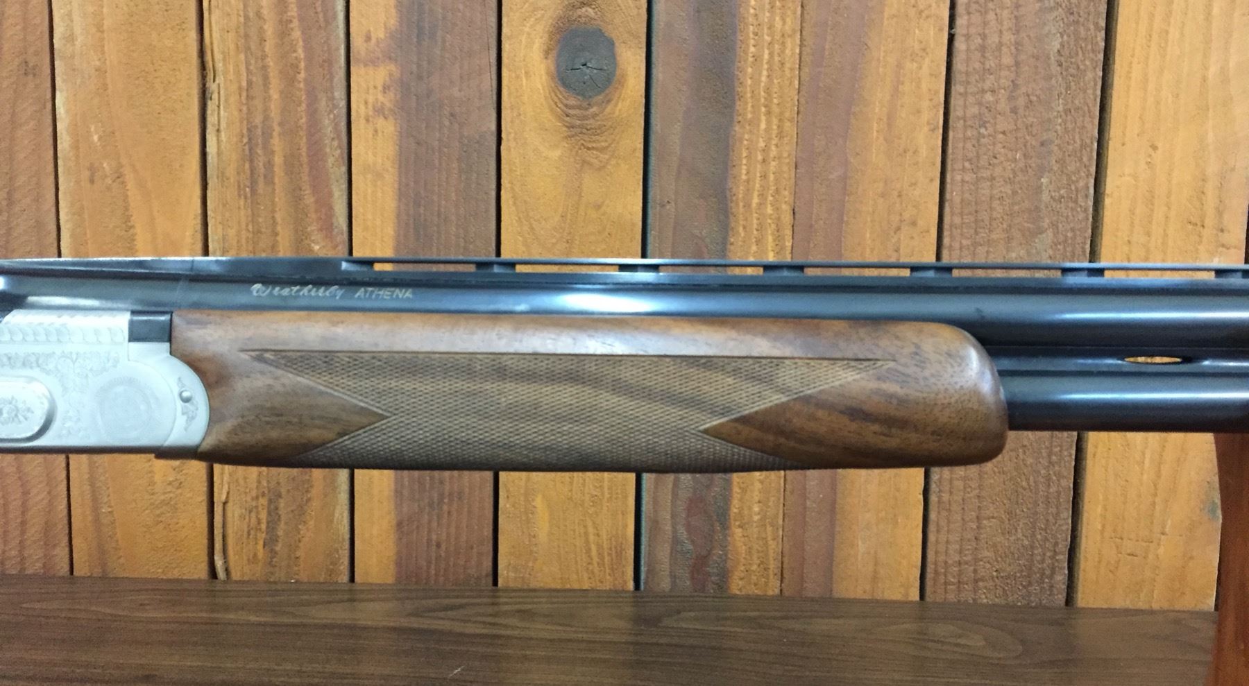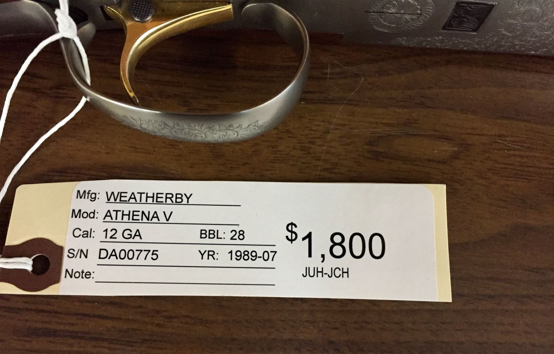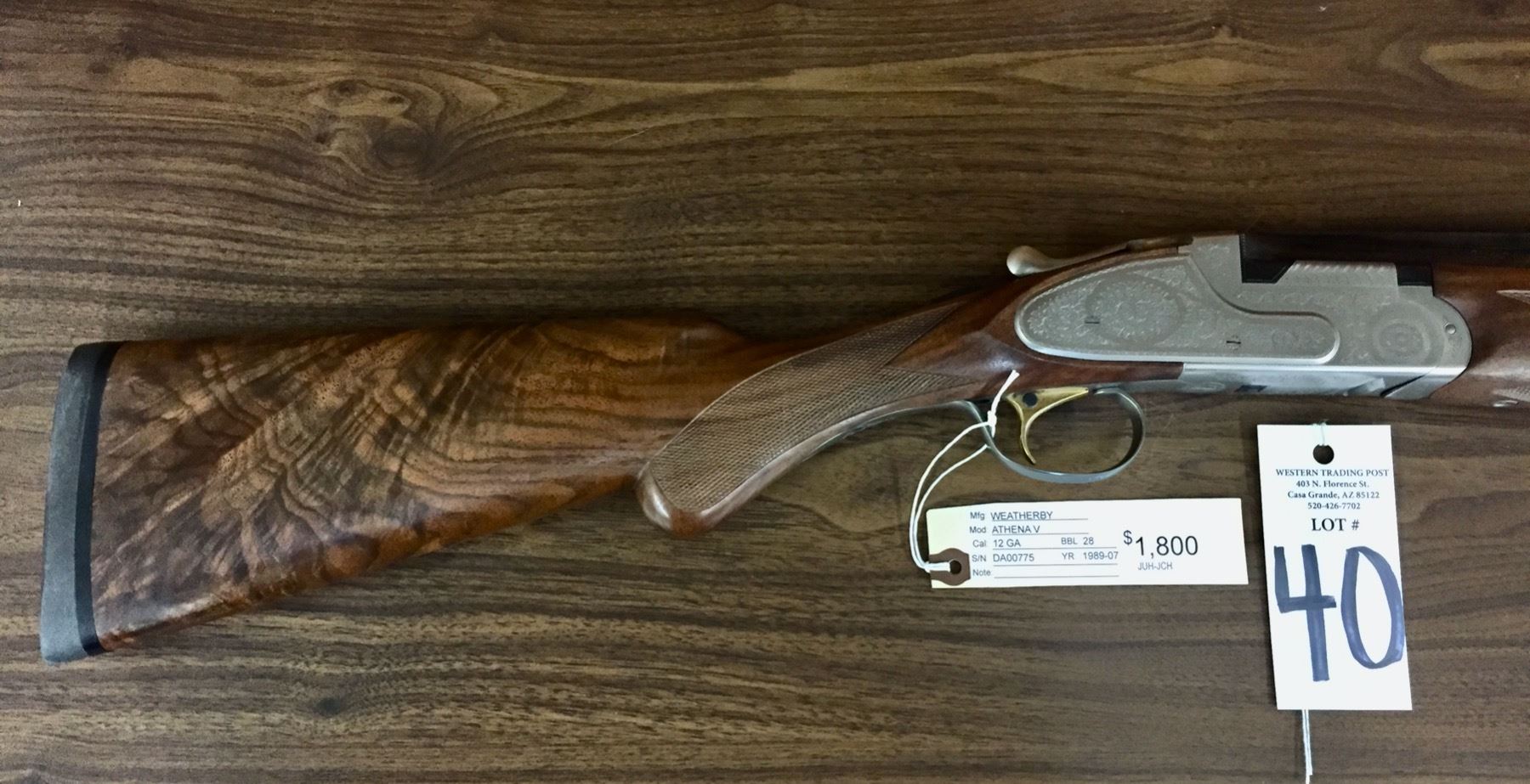 Description: Presented for sale in this lot is an engraved Weatherby Athena 12 gauge shotgun with gold toned trigger. This is an over and under shotgun with a vent ribbed top line and is in like new condition. Maker: Weatherby. Approx. Age: Between 1989 - 2007. With the serial No. DA00775, that puts it towards the earlier part of that period. Size: Barrel measures 28 inches long. Condition: Good to excellent, minor wear expected. Please look closely at the pictures - they are an important part of our description. Shipping: There will be a $15 handling, packaging fee for shipping this lot. The actual cost of postage will be added on top of that. *****This firearm requires an FFL Transfer*****