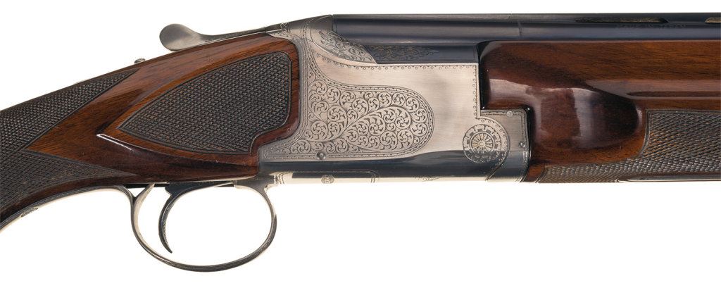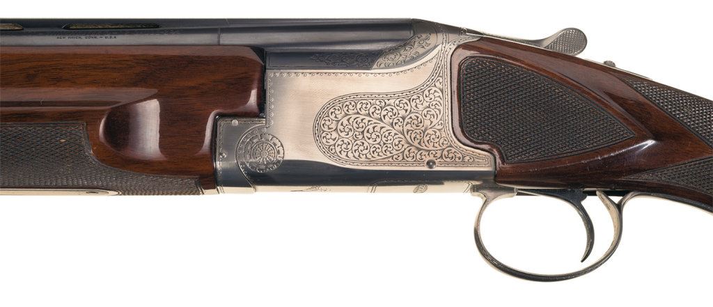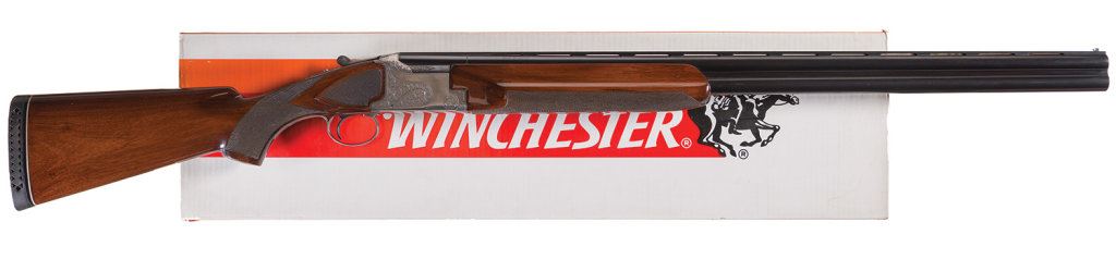 Introduced in 1974. Choked full/improved modified, 2 3/4" chambers with ejectors and a 14 3/8" LOP. Vent rib barrel marked "PIGEON GRADE". With a Winchester factory box numbered to another gun and papers.