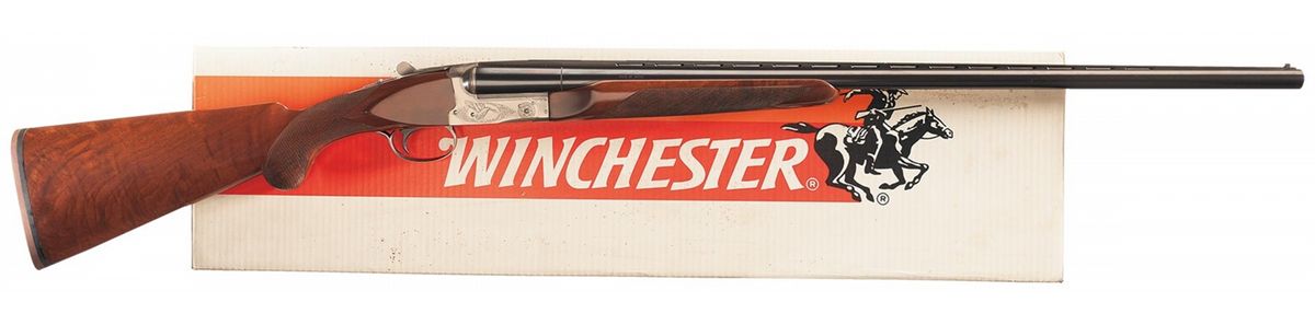 Manufactured in Japan. Dual white bead sights on matte vent rib and a lightly engraved coin finished action with the gold Ducks Unlimited logo head on the bottom. Standard markings and features of the model and Ducks Unlimited Issue. Mounted on a fancy checkered forearm and checkered round pistol grips stock with a solid rubber Winchester recoil pad. Chokes modified/full, 3 inch chambers with ejector and the length of pull is 14 1/4 inches. Complete with factory box numbered to the gun.
