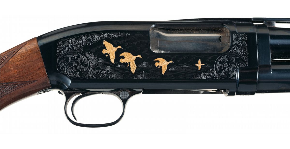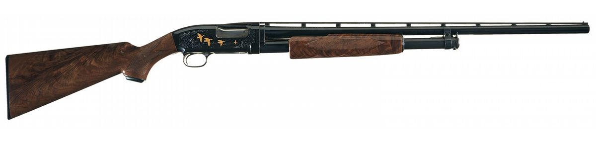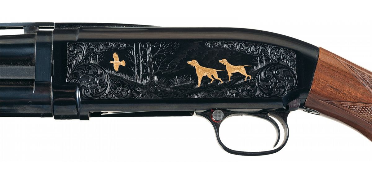 Engraved and Gold Highlighted Browning Grade V Model 12 Slide Action 20 Gauge Shotgun