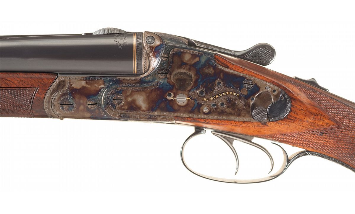 Engraved and Gold Inlaid Pre-World War II Heinrich Scherping Side Lock Hammerless Drilling