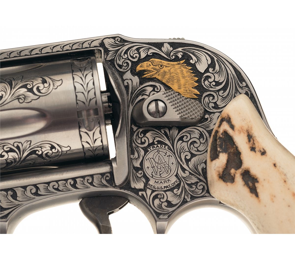 Engraved and Gold Inlaid Smith & Wesson 649-3 Double Action Revolver with Stag Grips