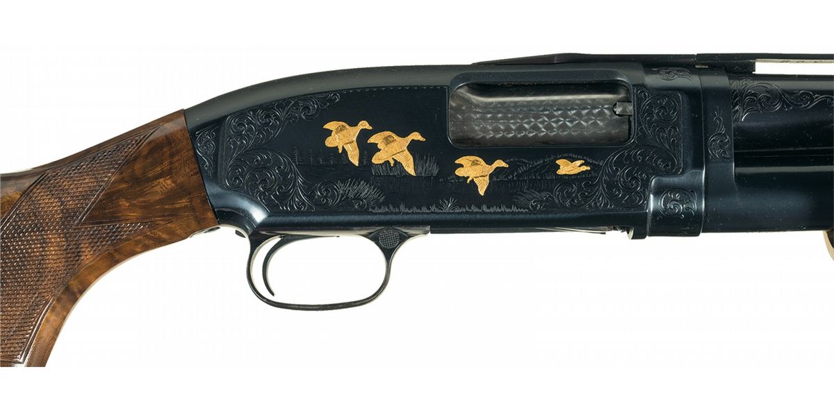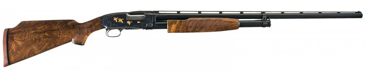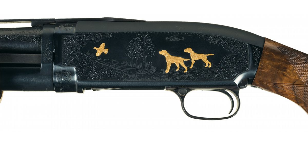 Engraved and Signed Gold Inlaid Winchester Model 12 Slide Action Trap Shotgun