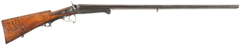 Engraved and Silver Inlaid "J REITTER. NEUOTTING." Marked Side by Side Damascus Barreled Back Action Hammer Shotgun