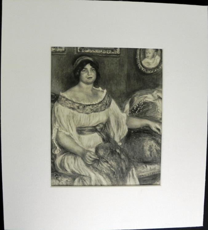 Artist: Pierre-Auguste Renoir From 1921 Et Ses AmisMedium: Gravures "hors texte" (Engraving)Matte: SilkImage size: 7 1/4" x 5 3/4"Matte size: 12" x 11"Justification du Tirage (Justification of Drawing): Affixed to the back of the foam-core backingCondition: Excellent**Justification du triage: At the beginning or at the end of a volume, it is the indication given by the editor of a print edition, specifying the different types of copies published and paper used.BiographyAn innovative artist, Pierre-Auguste Renoir was born on February 25, 1841, in Limoges, France. He started out as an apprentice to a porcelain painter and studied drawing in his free time. After years as a struggling painter, Renoir helped launch an artistic movement called Impressionism in 1870s. He eventually became one of the most highly regarded artists of his time. He died in Cagnes-sur-Mer, France, in 1919.*retrieved from: http://www.biography.com/people/pierre-auguste-renoir-20693609#synopsis