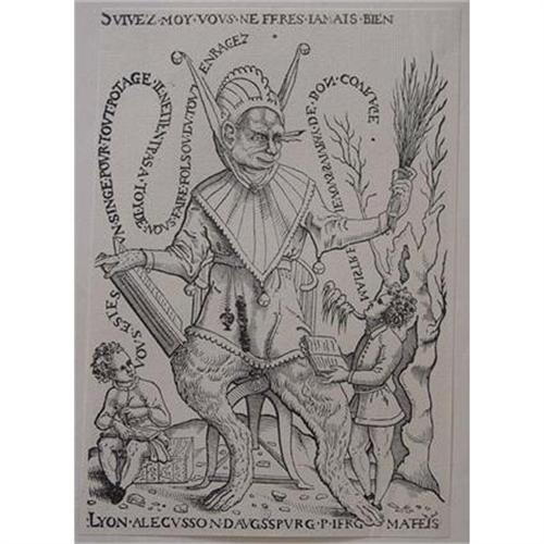Engraving "Satyr against Teachers" after Rennaissance original by same name. Appears to be a wood cut print. The text on the reverse of the print reads as follows: "Bibliotheque Nationale, Cabinet des Estampes, Chefs-D'oeuvre et Pieces Uniques, Ecole Francaise, XVI Siecle, P. Francois Mathies (Publie par) Satire contre les Pedagogues, Gravure sur Bois. Fortier-Marotte, SC. 23, Lib. -Imp. Reumies, Editeurs, 5, rue Saint Benoit, Paris. Undated, probably made in the 1890's based on similar references. Shipping this item anywhere in the USA will cost USD$8 via registered Post Office Airmail, service is very reliable but does not offer insurance. Please ask questions, request additional photos and shipping details before bidding.