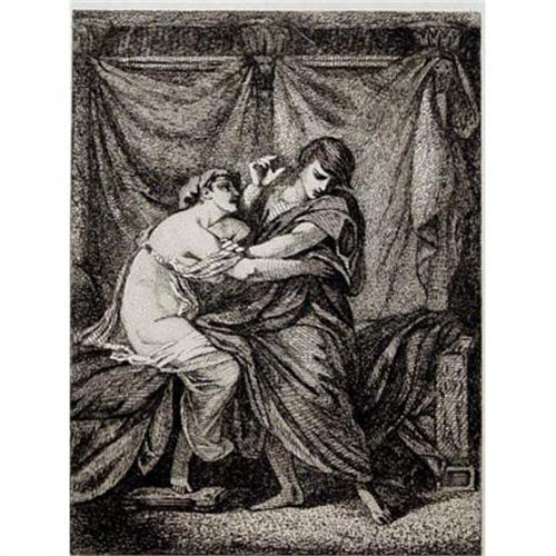 Engraving after work by French painter and draftsman Pierre-Paul Prud'hon (1758 -1823). In good used condition with toning and minor signs of wear as shown. Please ask questions, request additional photos and shipping costs prior to bidding.
