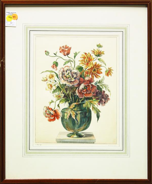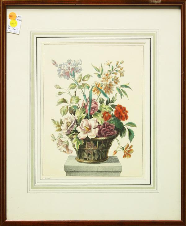 (Set of 2) Framed hand-colored engravings, Florals, After Louis Tessier (French, 1719-1781), 20th century impressions, inscriptions within plate lower margin, overall: 21.75''h x 18.25''w