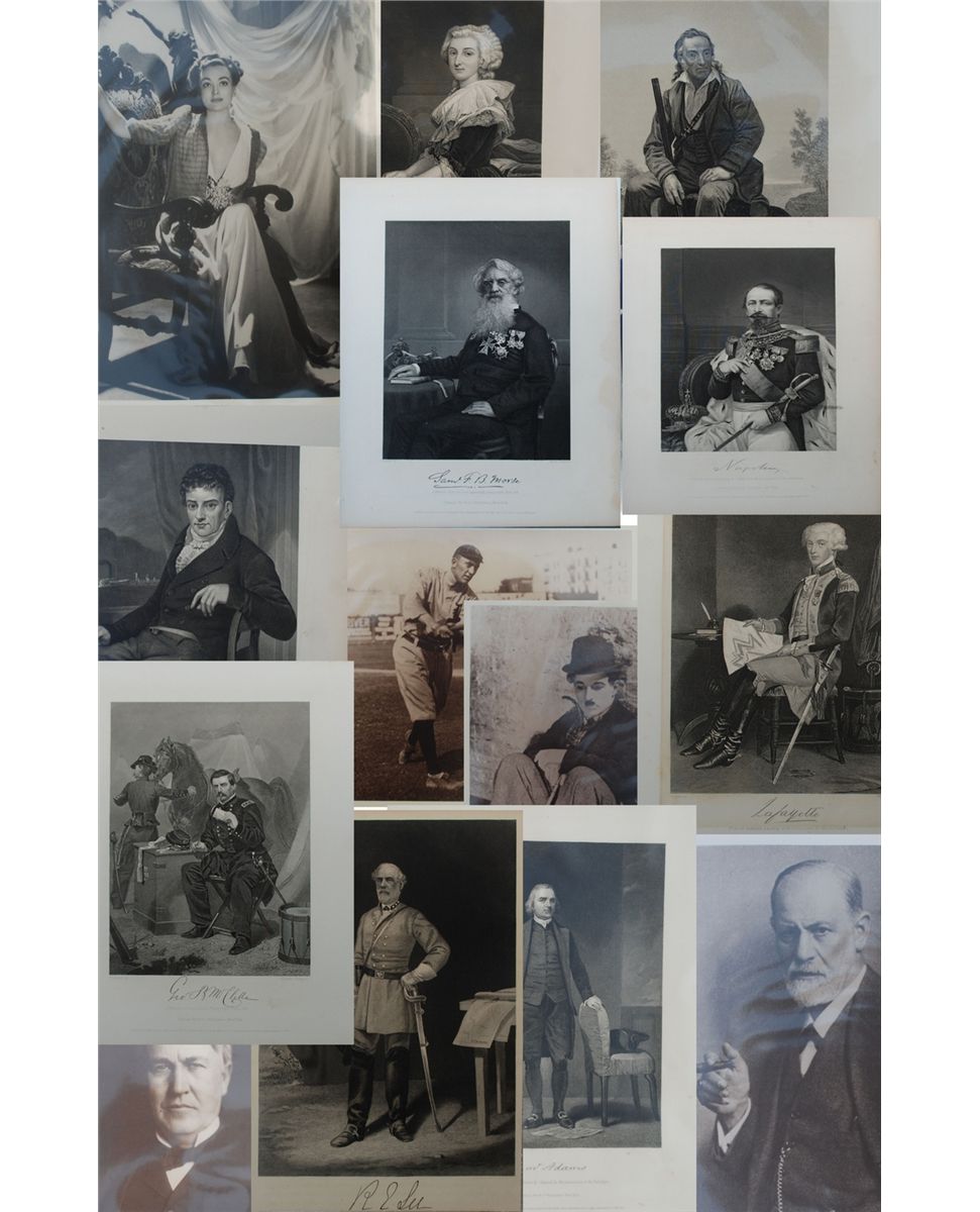 A wonderful grouping of over 100 fine Engravings and original and photo reproductions of famous individuals touching on many topics, history, art,literature, Statesman, and more. Perfect collection to use for framing or placing with related autographs and documents.