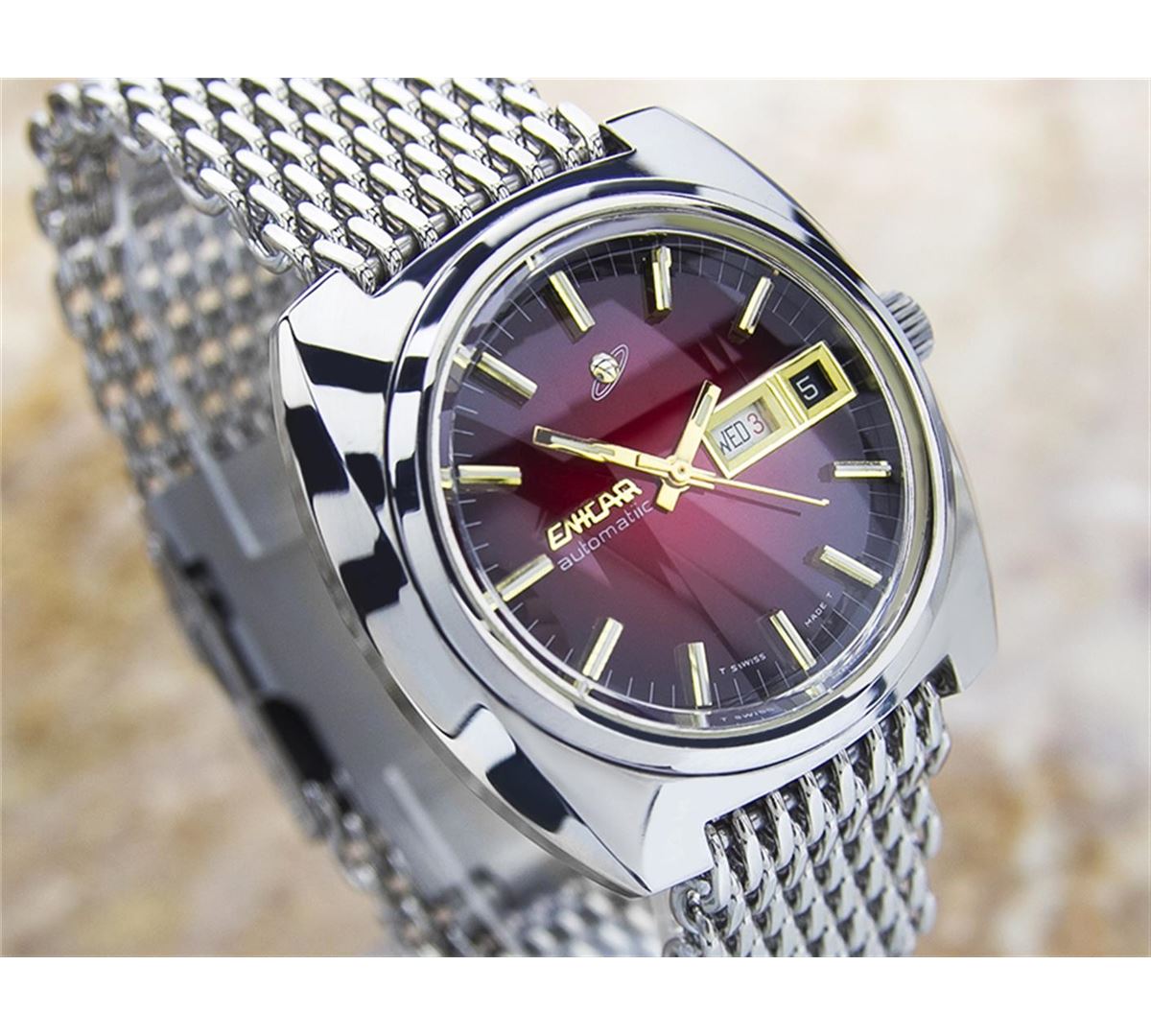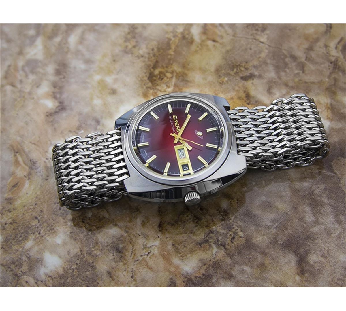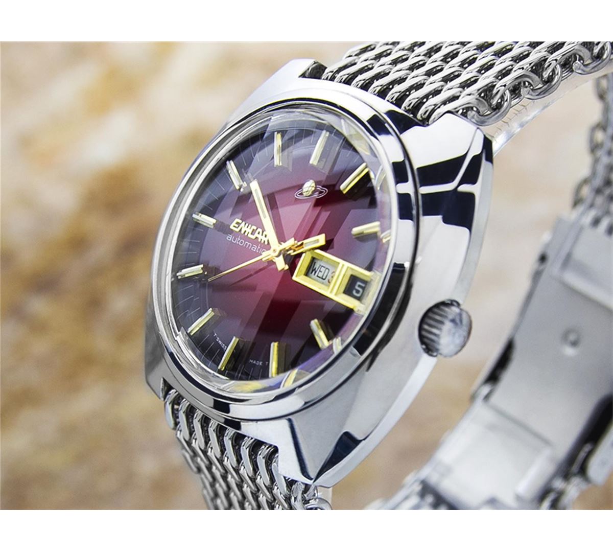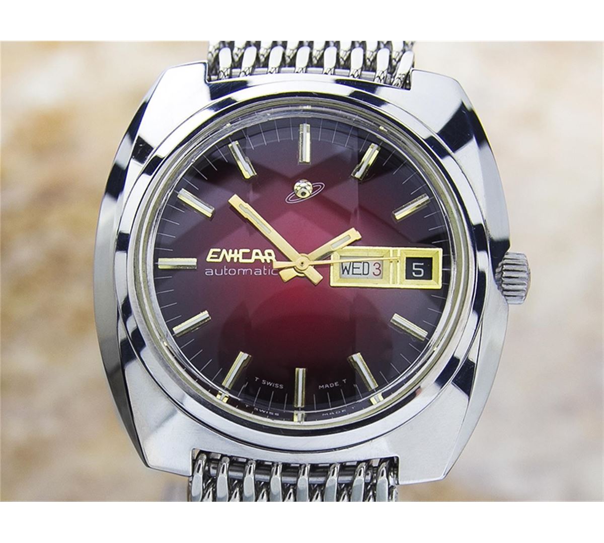 Enicar Day Date Stainless Steel Automatic Watch. Brand: ENICAR. Model: 167-07-115. Movement: Automatic. Case Material: Stainless Steel. Crystal: MINERAL GLASS. Case Size: 40x40. Band: Stainless Steel BRACELET.