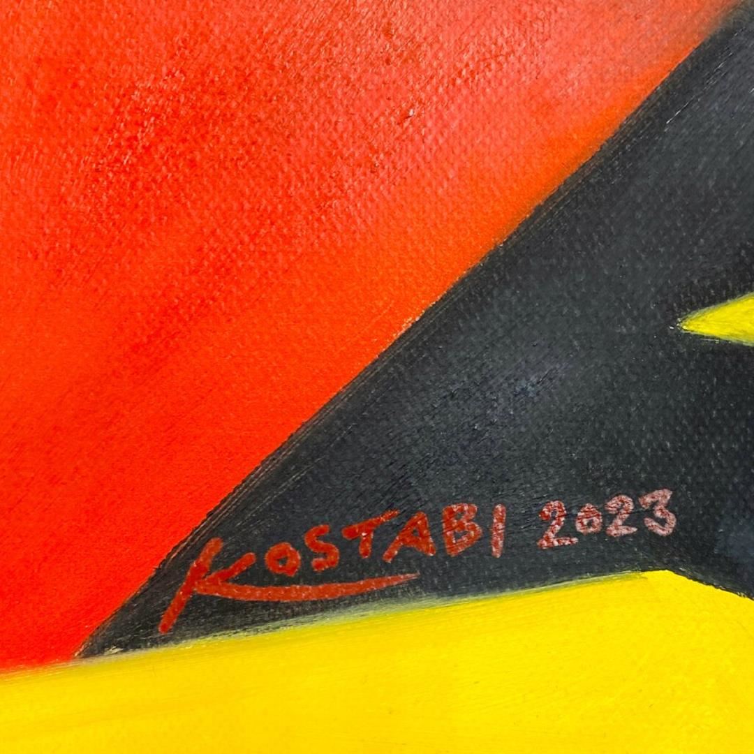 "Enigmatic Connections" is an original oil painting on canvas by Mark Kostabi, hand signed by the artist. This piece comes custom framed. Includes Certificate of Authenticity. Measures approx. 27.5" x 33.5" (frame), 17.5" x 23.5" (image).