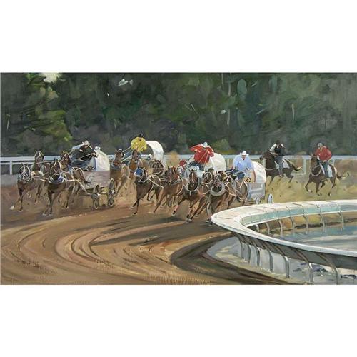[Mongolian b. 1966] RACING; 2007 Oil on canvas 24 x 40 in. Signed, titled & dated.