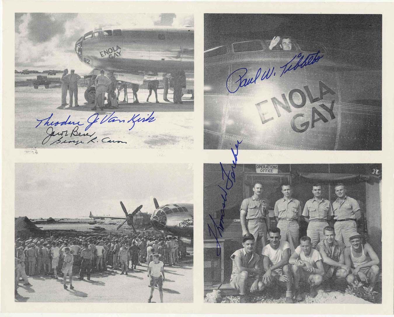 Signed 10" x 8" Collage Photo of Enola Gay -- Signed by Tibbets, Beser, Ferebee, Van Kirk and Caron -- Near Fine