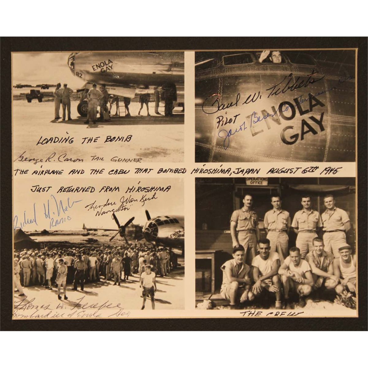 Signed 9'' x 7'' Collage Photo of Enola Gay -- Signed by Tibbets, Beser, Ferebee, Van Kirk, Caron and Nelson -- Near Fine