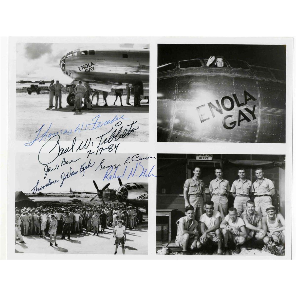 Enola Gay 10'' x 8'' Glossy Photo Signed by Six Crew Members -- Ferebee, Tibbets, Beser, Van Kirk, Caron and Nelson -- Fine Condition