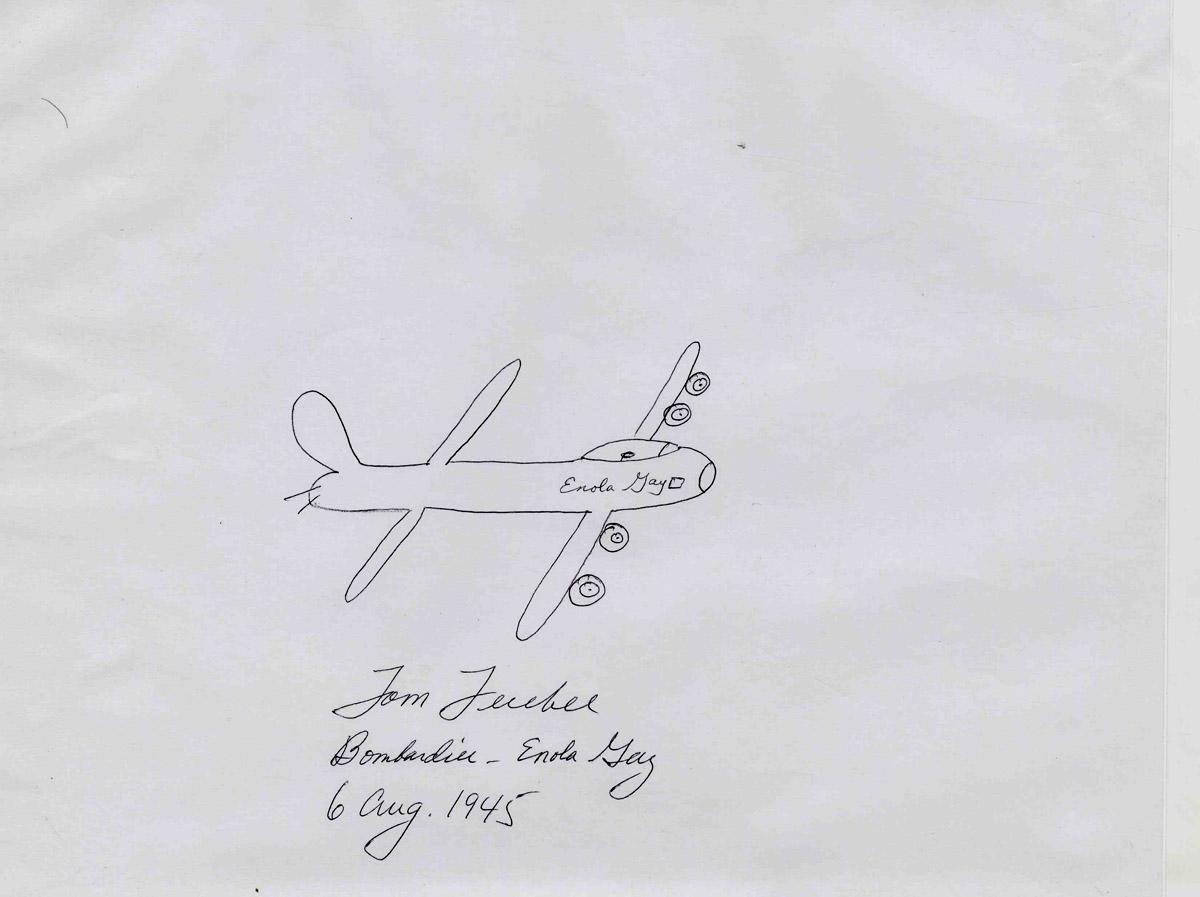 Enola Gay 10" x 8" Sketch Signed Boldly by Bombardier Tom Ferebee -- Dated 6 August 1945 as Commemoration -- Fine Condition