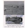 Sobering semi-glossy 8 x 10 cardstock photo showing images of the ruins of Hiroshima and the atomic bomb dropped from the Enola Gay, with a caption below, "Little Boy, Dropped by Enola Gay and its effect on Hiroshima, Japan August 6, 1945," signed in blue felt tip, "Tom Ferebee, Bombardier," "Paul Tibbets, Pilot," "Dutch Van Kirk, Navigator," and "Dick Nelson, Radio." In fine condition