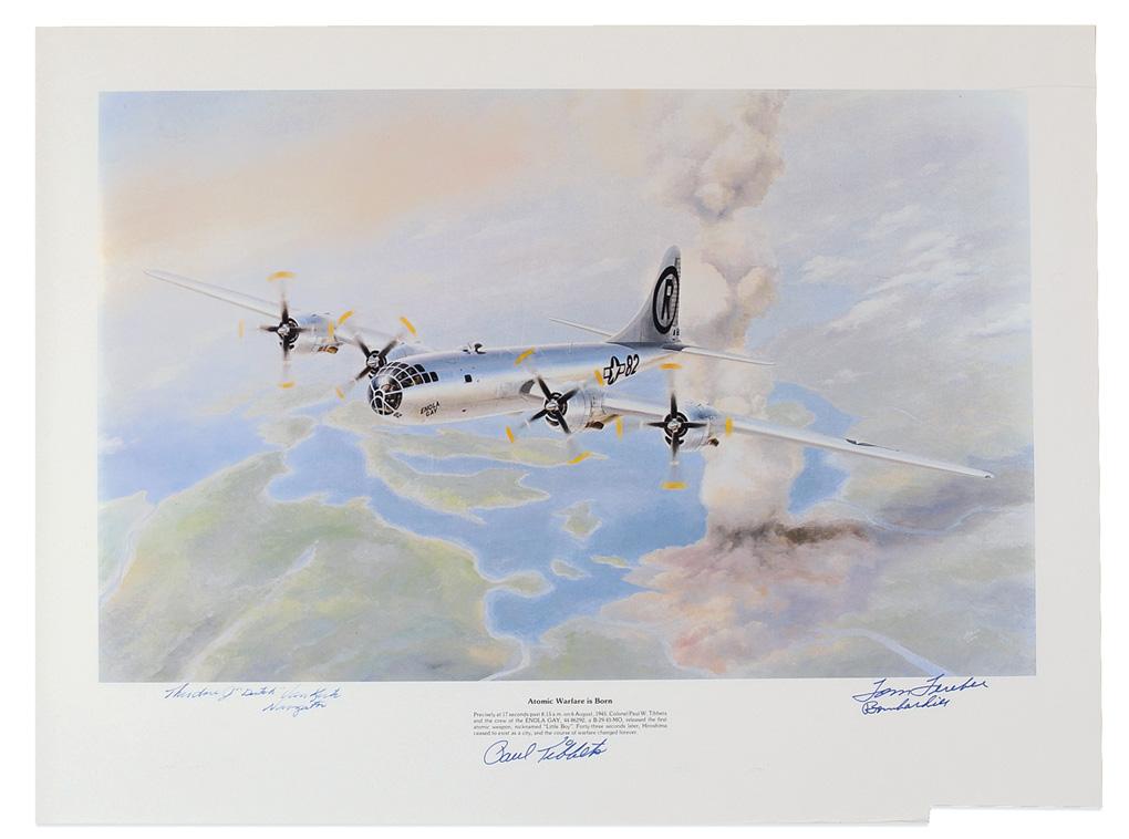 Color 18 x 24 print entitled “Atomic Warfare is Born”, signed in blue felt tip. Rolled and in fine condition, with small clipped area of lower right border, easily matted out.