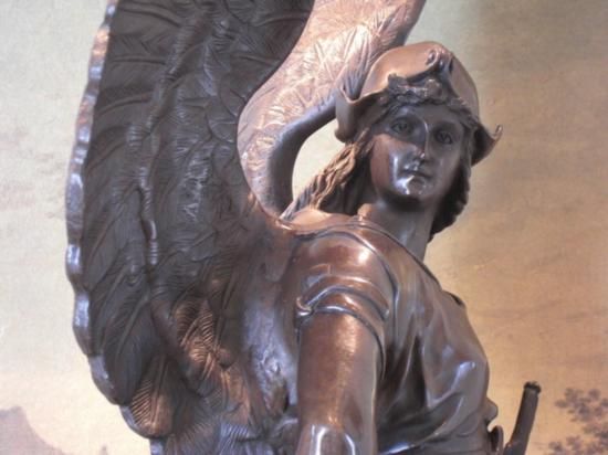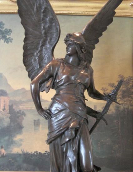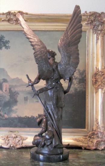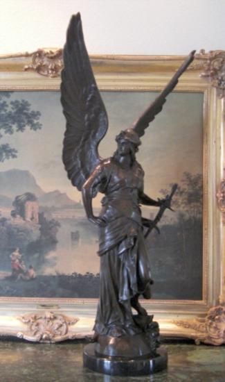 Aurora Winged Victory Goddess Bronze Sculpture, After Beach, 33"H x 14"W x 11"D 55 lbs. This bronze sculpture was produced using the "Lost Wax" casting method. The"Lost Wax" Cast method is the most precise metal casting technique in existence, ensuring exquisite detail of the original host model which is usually sculpted in clay or wax. This "Lost Wax" casting method is an extremely labor intensive and expensive process, but the end results produce a Heirloom Quality Masterpiece!