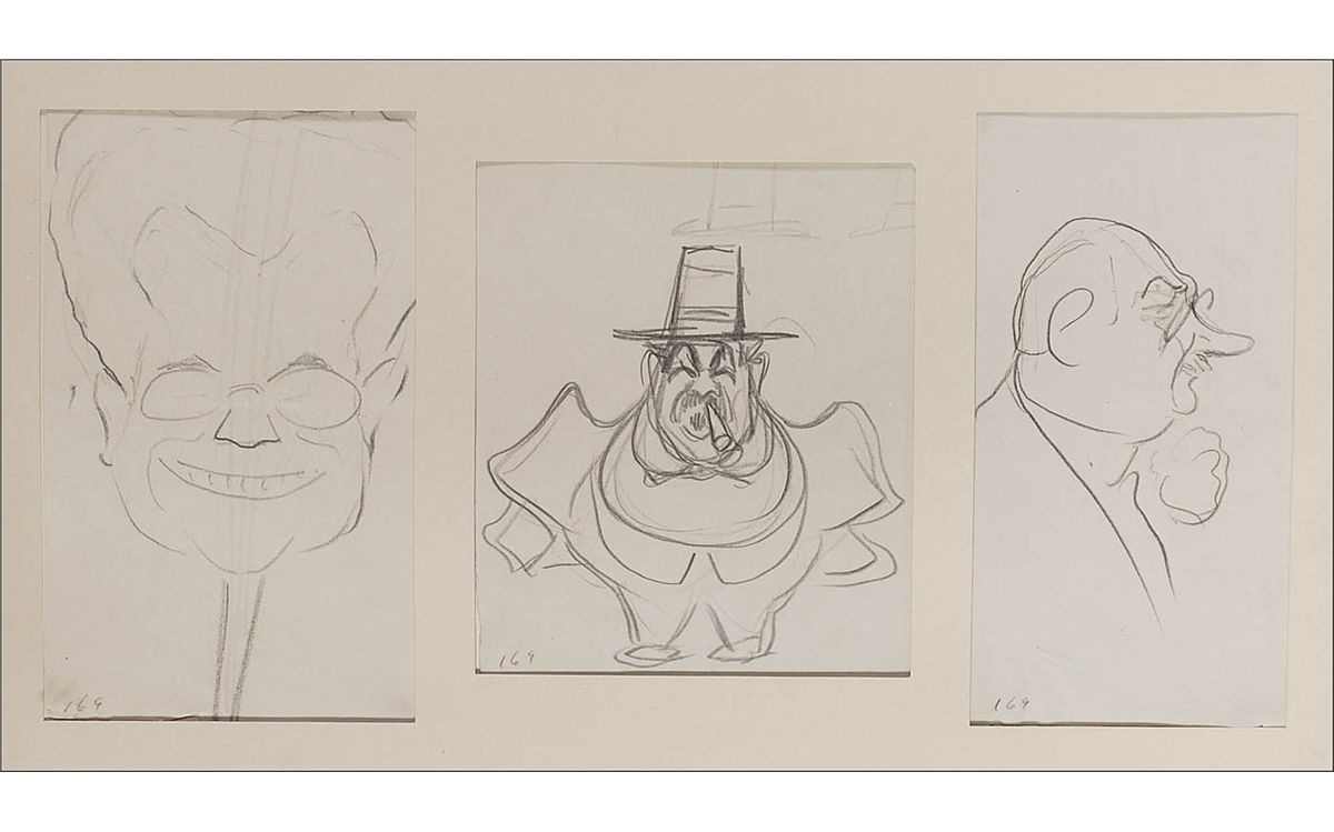 Caruso was not only the most famous—and best—tenor who ever lived, he also could draw gorgeous caricatures. This immense volume is a superior example of this artistic touch. The high-quality sketches also hints of Caruso’s humorous side in some of their make-up, as caricatures are wont to do, with elongated and exaggerated features. Although research has shown that some of the examples here are similar in design to Caruso drawings that have reproduced throughout the years, the exact drawings here do not appear to have ever before been published, though comparable examples can be found in his son’s book, Caruso’s Caricatures. Among the 44 likenesses are depictions of French composer Gustave Charpentier, conductor Nahan Franko, and violinist Mischa Elman, as well as a self-caricature of Caruso in Les Huguenots. According to the consignor, this truly one-of-a-kind collection was originally the property of their father, a minor Italian tenor whose family lived in Chicago from the 1930s onward. Accompanied by a 2010 insurance appraisal of the collection. Truly an incredible item deserving of having its praises sung!