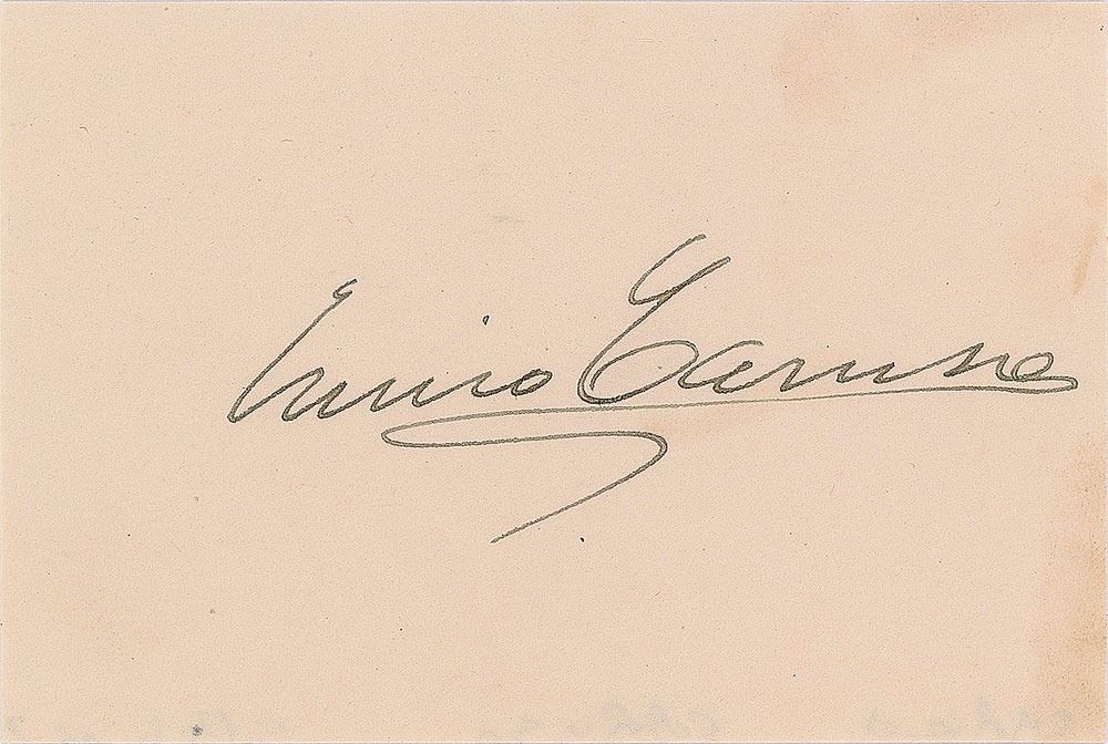 Vintage fountain pen signature, "Enrico Caruso,” on an off-white 3.5 x 2.25 sheet. In fine condition.