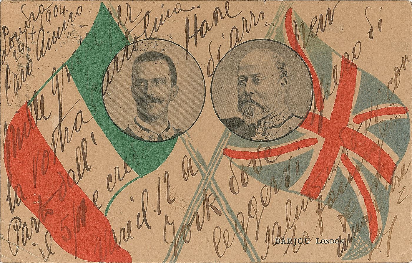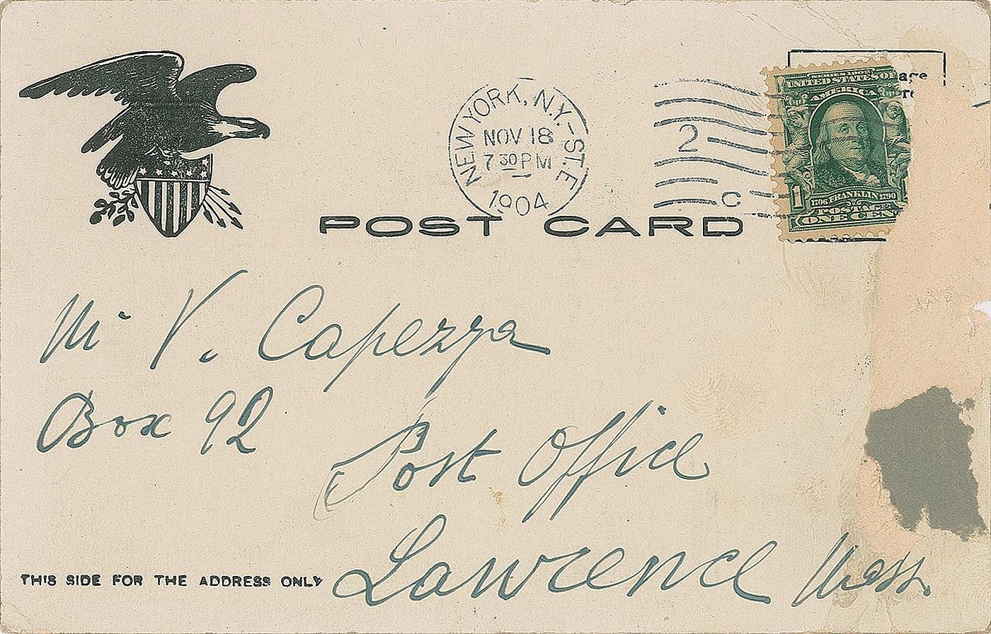 Pair of untranslated ALSs in Italian on individual 5.5 x 3.5 postcards, one dated October 24, 1904, and the other postmarked November 18, 1904. In overall fine condition, with creasing to the lower left corner, and old mounting remnants on the address side.