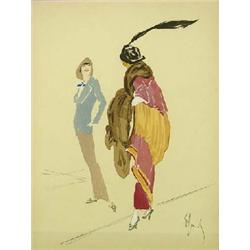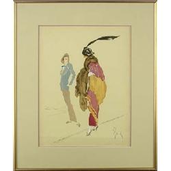 Enrico Sacchetti (1877-1967) (Italy) Mixed Media, Fashion, sight size 14.5" x 10.5", signed lower right, Est $1,000 - $1,500