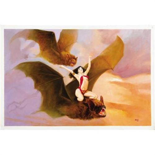 <B>Enrique Torres - "Vampirella: Beginnings" Painting Original Art (undated).</B></I> The Darling of Drakulon flies again with a few of her winged warriors. In typical Vampirella fashion, this gorgeous gallery painting by Enrique Torres is both erotically charged and terrifying. This unstretched oil on canvas sensation has an overall size of 62" x 42", and is in Excellent condition. <BR><BR><b>Shipping:</b> Rolled Material (<a target="_blank" href="http://www.heritageauctions.com/common/shipping.php">view shipping information</a>)