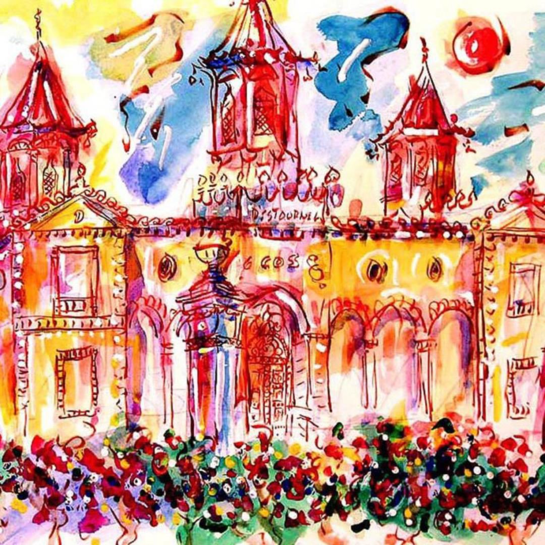 "Chateau Cos D'Estournel" is an original Mixed Media on Paper by Wayne Ensrud. The piece is hand signed by the artist and comes with a Certificate of Authenticity. Measures approximately 20" x 29".